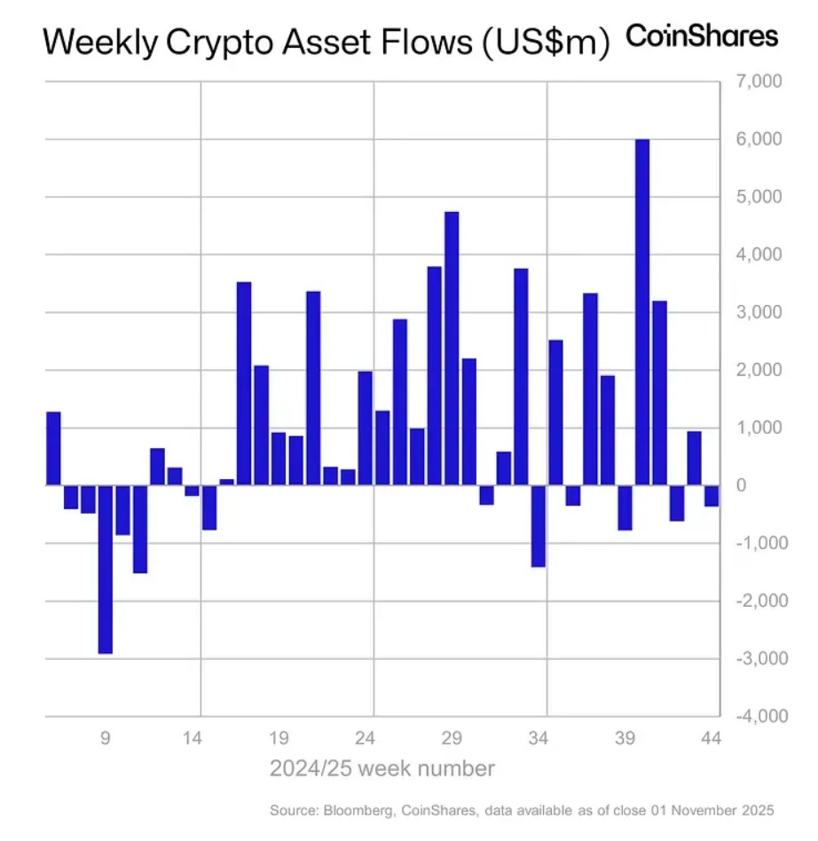 Согласно данным аналитиков CoinShares, за период с 27 по 31 октября совокупный отток средств из инвестиционных продуктов, основанных на криптовалютах, составил 360 миллионов долларов США. отток произошел несмотря на снижение ключевой ставки ФРС.